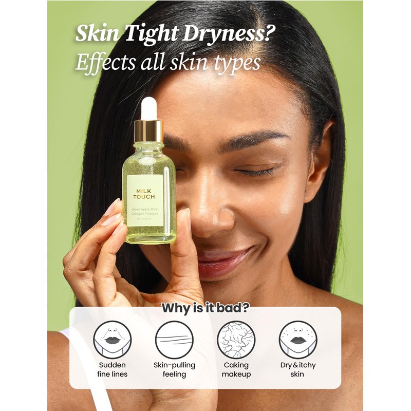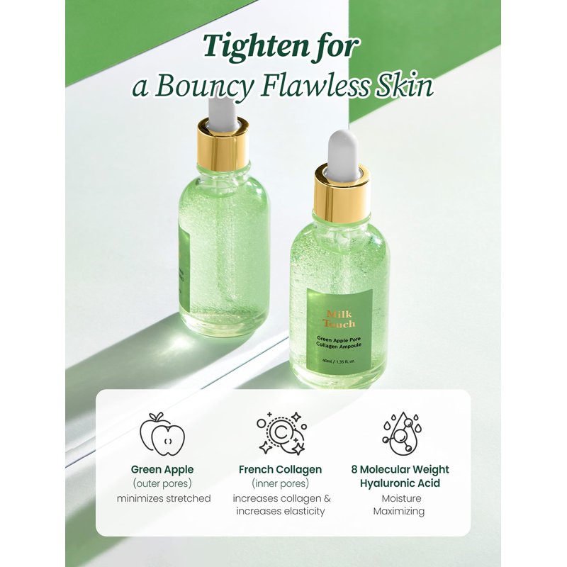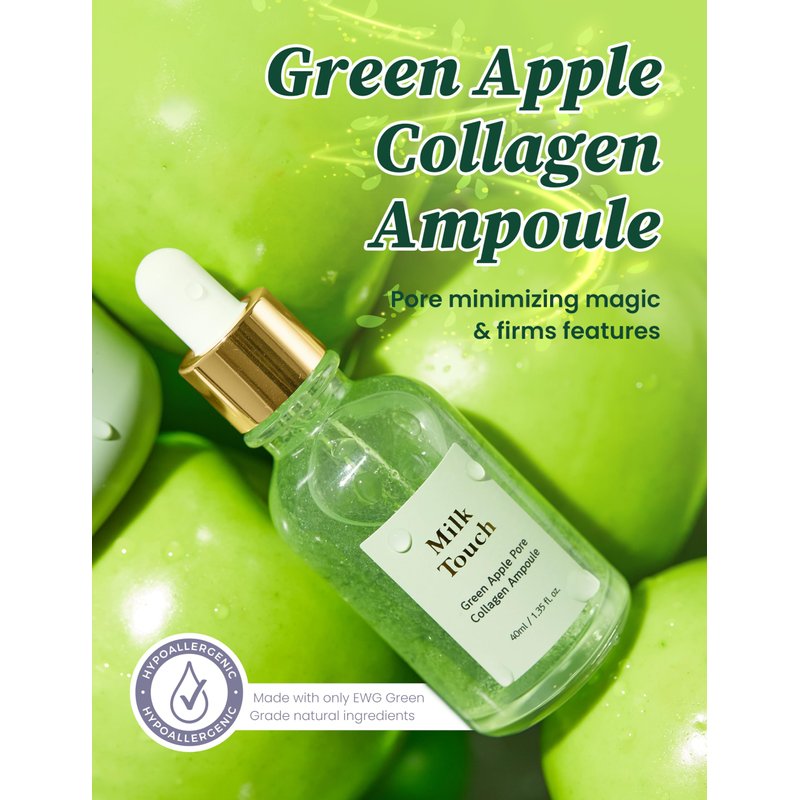 MILKTOUCH Green Apple Pore Collagen Ampoule for Face | Daily Face Moisturizer Skin Moisturizing Serum for Face | Facial Serum w/Collagen & Niacinamide Oil Control Moisturizer 1.35 fl oz