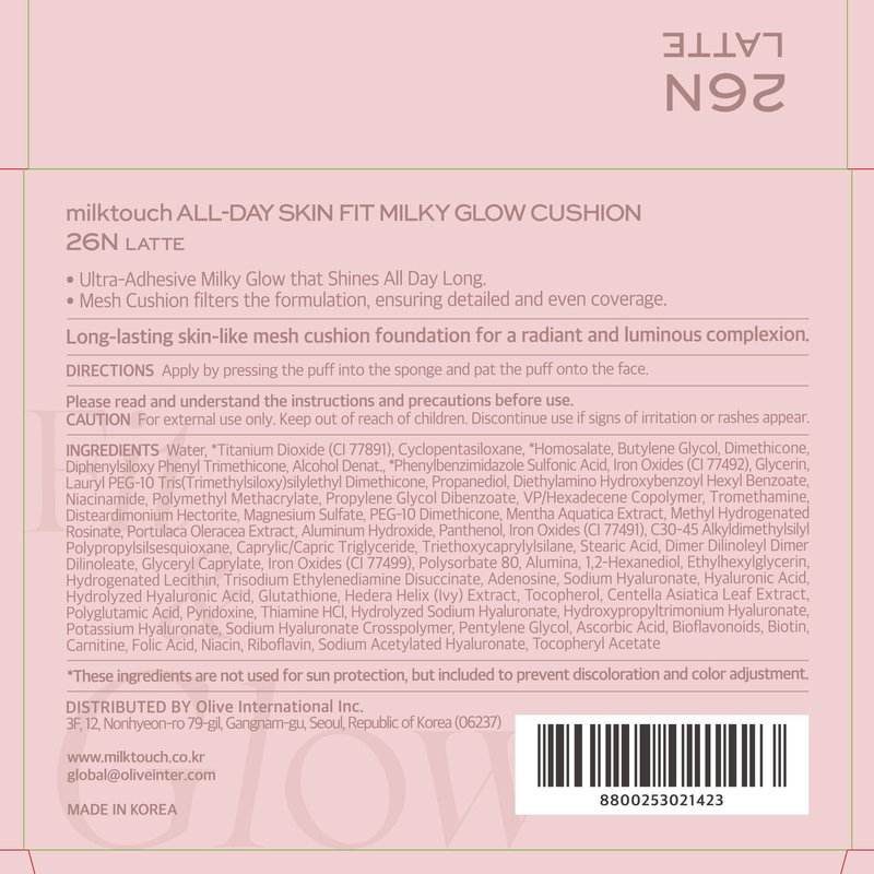At MILKTOUCH, weโre thrilled to unveil our All Day Skin Fit Milky Glow Cushion Foundation, the latest innovation in our 2nd Generation cushion lineup. As one of Koreaโs leading makeup brands, weโve leveraged our expertise to create a foundation that redefines convenience and performance. This sleek, portable compact includes a built-in mirror and a specially designed puff, making it perfect for quick and easy application anytime, anywhere. The foundation features a creamy texture that seamlessly adheres to your skin, providing a smooth finish without creasing, budging, or settling into fine lines. Its formula is infused with 60% hydrating essence and six skin-loving ingredients, ensuring itโs suitable for all skin types. This hydrating blend keeps the product intact and true to its original shade throughout the day, preventing any unwanted color changes or oxidation. With 20 diverse shades to choose from, our cushion foundation caters to a wide range of skin tones, offering various undertones to match every complexion. The formula, powered by Glutathione and a Vitamin Complex, delivers a natural, radiant glow that lasts all day, thanks to these potent antioxidants that fight oxidation. This cushion foundation provides medium, buildable coverage that effectively conceals blemishes, redness, and uneven skin tone while enhancing your natural beauty. Its fine mesh design allows for a thin, even layer of product to be dispensed, ensuring a flawless, seamless blend. The perforated puff then evenly distributes the foundation, preventing patchiness and ensuring a smooth application every time. Whether youโre heading to work or out for an evening, the All Day Skin Fit Milky Glow Cushion Foundation is your go-to for a fresh, radiant look that lasts from morning to night.