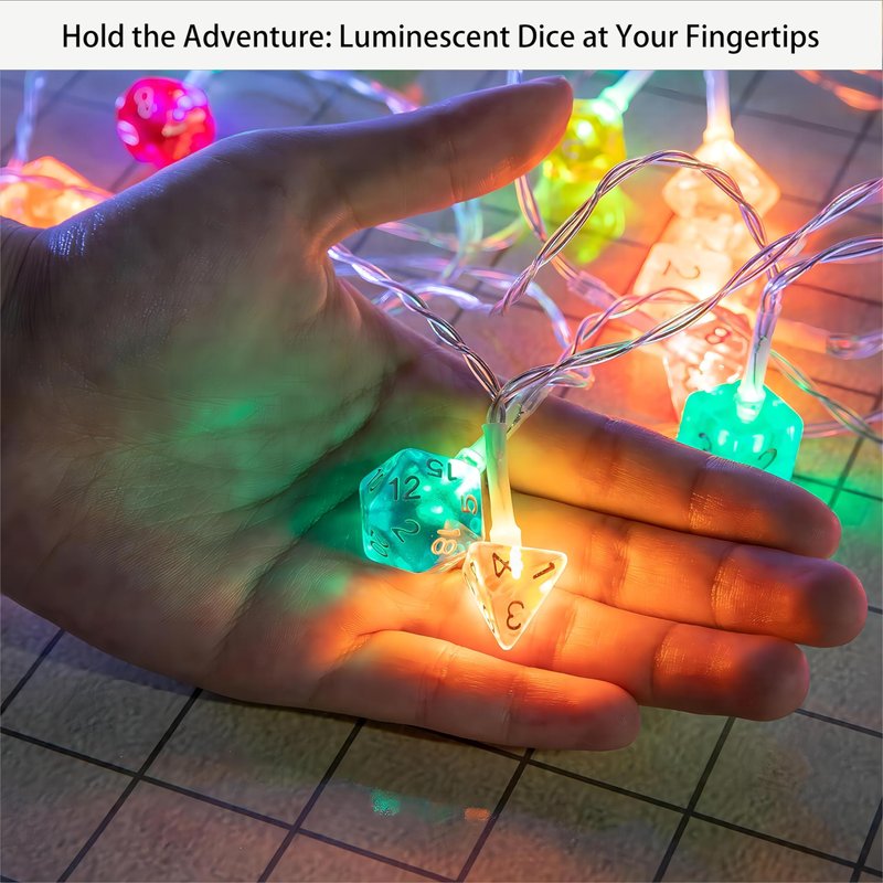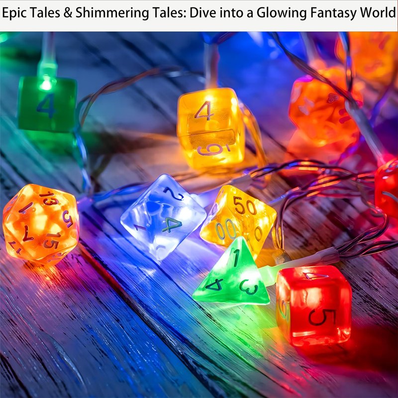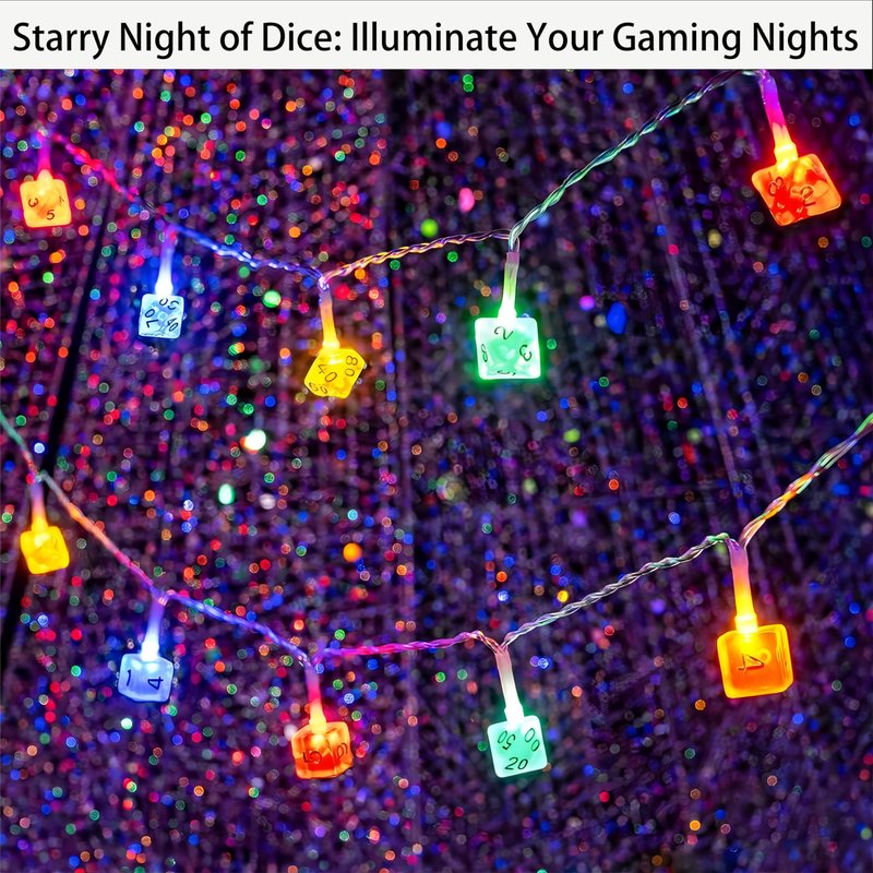- 【🎲 Unique Dice Design】: Stand out with our LED string lights featuring a unique polyhedral dice design, a must-have for role-playing game enthusiasts. Light up your gaming experience with a steady 360-degree viewing angle that illuminates in every direction.