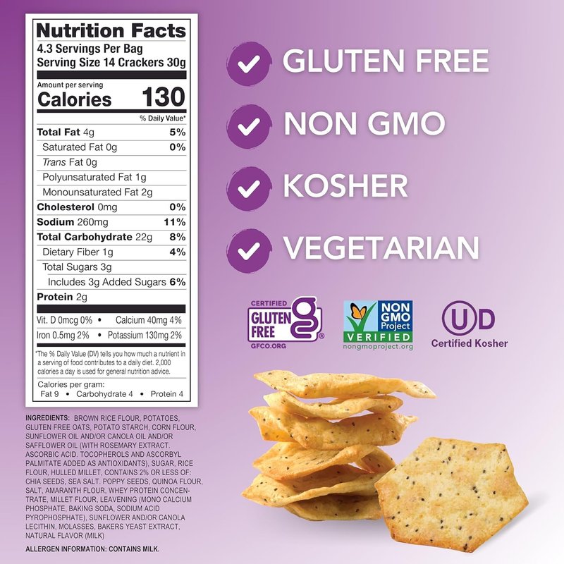 - LIGHT, CRISPY, & CRAVEABLE - Fall in love at first bite! These crackers have an airy, chip-like texture that makes them SO satisfying & perfect for on-the-go snacking or tucking into lunchboxes.