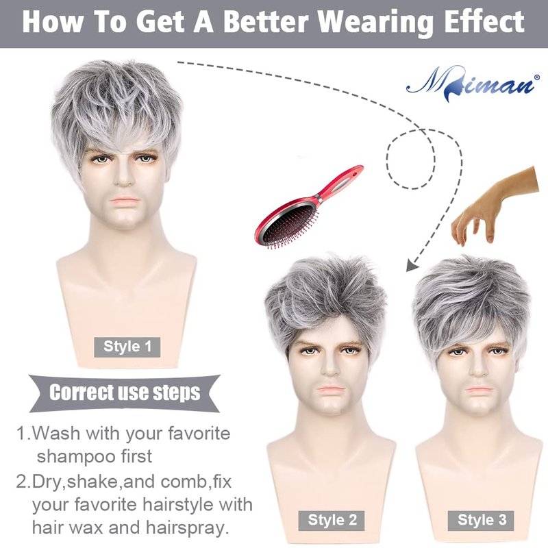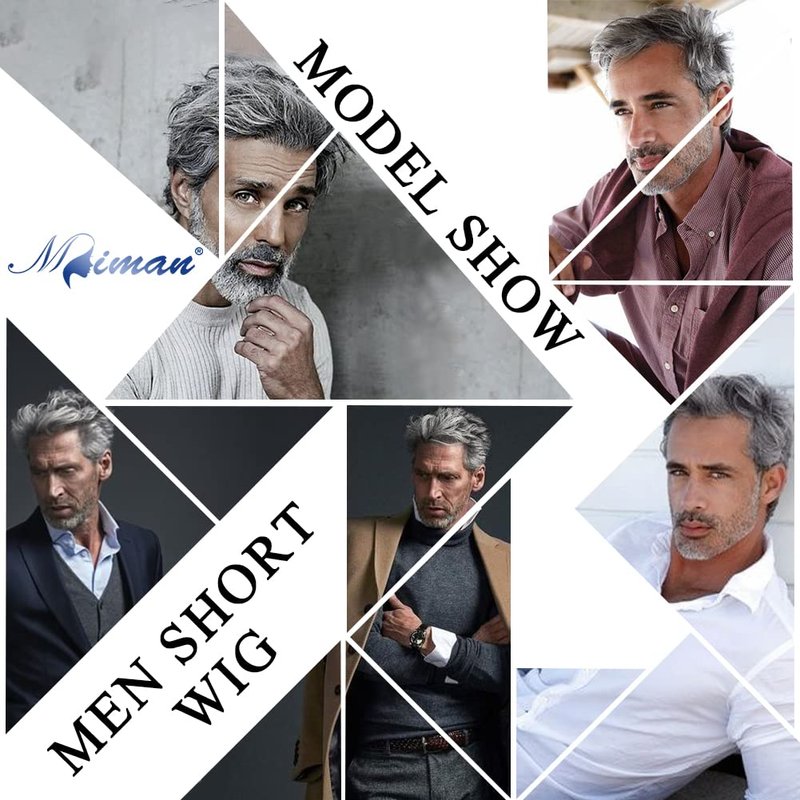 MIMAN Mens Short Grey Wigs for Men Short Straight Wig Layered Natural Synthetic Men's Wig Realistic Hair Replacement Wig Handsome Male Party Cosplay Wig Mens Halloween Costumes Wig with Wig Cap