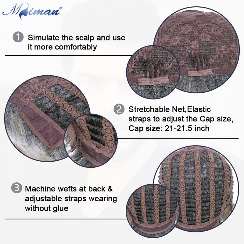 - ✿Men's Straight Pixie Cut Wig Info, 21- 21.5 inch breathable rose net cap,cool and comfortable.adjustable elastic bands and hairpins provide the best wearing experience.(Package Included: A natural looking men wig+A free wig cap)