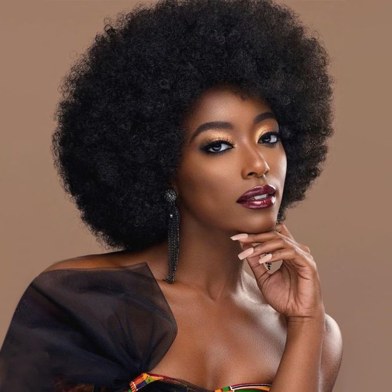 - Color: F-Black Fluffy Tight Curls Afro Wig
