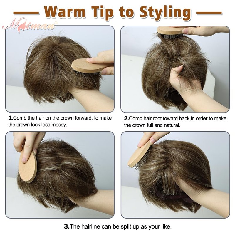 - Everyone Is Their Own Stylist: Special Tips for short hair styling: Shake the Hair Wig 2-3 times to make the hair fluffy; Use a comb to comb the hair on the top of the head (the crown) from the root to the back to make the hair fluffy; Use your hands to make the hair texture out. The wig can be trimmed a little to get the right length you like.