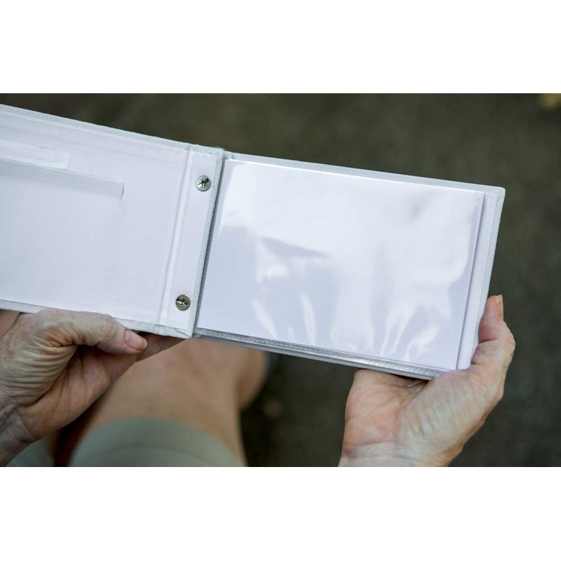 Mimi will be proud to carry this new brag book to show off her beautiful grandchild or grandchildren. This sweet Mimi gift will fit easily into her handbag, briefcase or gym bag--- it goes with her anywhere bragging rights are allowed! As a baby shower gift, our elegant Mimi photo album makes a great gift for a new grandma. The white faux-suede photo book features 16 inserts which hold up to 32 3.5x5 or 4x6 photos. It features detail side stitching and is post-bound and acid-free.