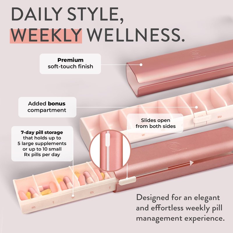 Mimi Medcessories - Pretty Pill Box Set - Stylish & Compact Daily Pill Organizer, Medication Pill Case, Pill Container for Vitamin Management, Pill Holder, Travel Essentials for Women & Men - Rose