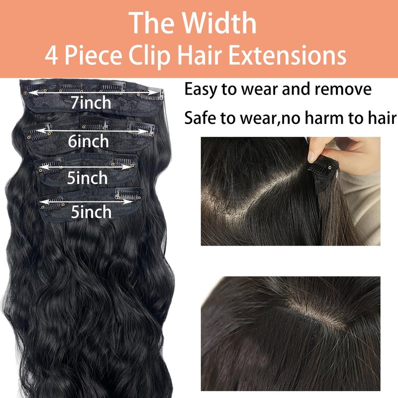 - 【Advantages of 4PCS Clip in Extensions】Compared to traditional hair extensions,our clip in extensionss uses BB clips to fix,Needn’t tape, glue, no damage to the scalp and hair.In just a few minutes,you can get a new modern look.The most important is this set does not have any strange chemical smell like many other.