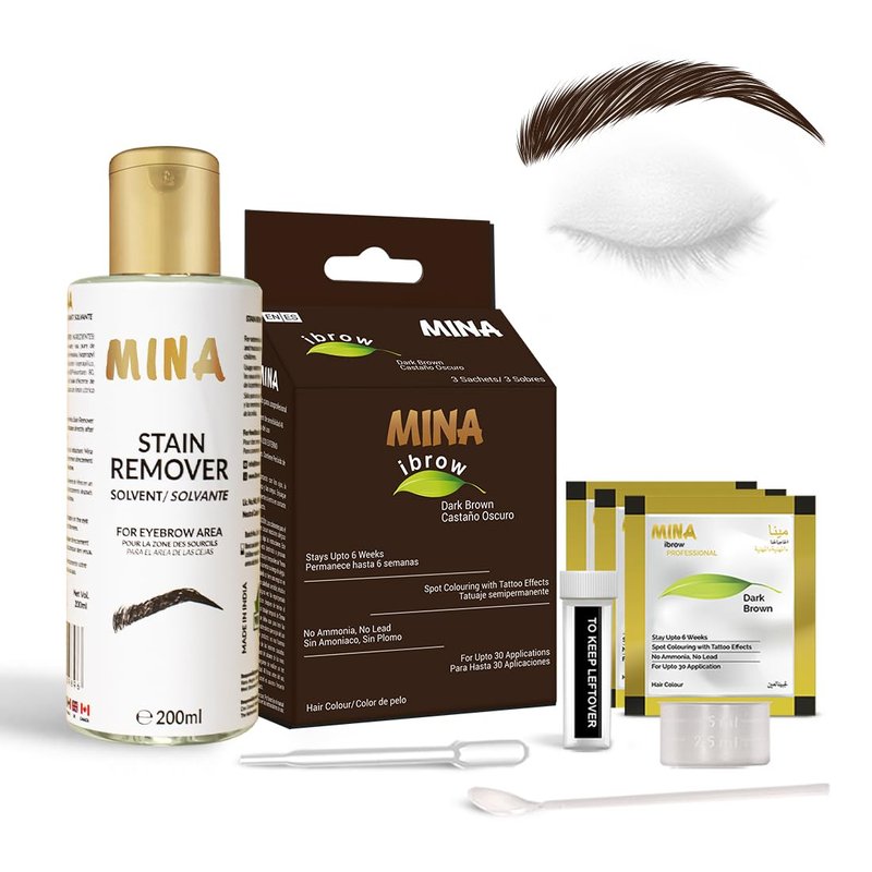 MinaiBrow Tint Kit Dark Brow | Natural Spot Coloring Brow Tinting Powder with Stain remover, Softly Removes Color from Skin - Smudge Proof Tint