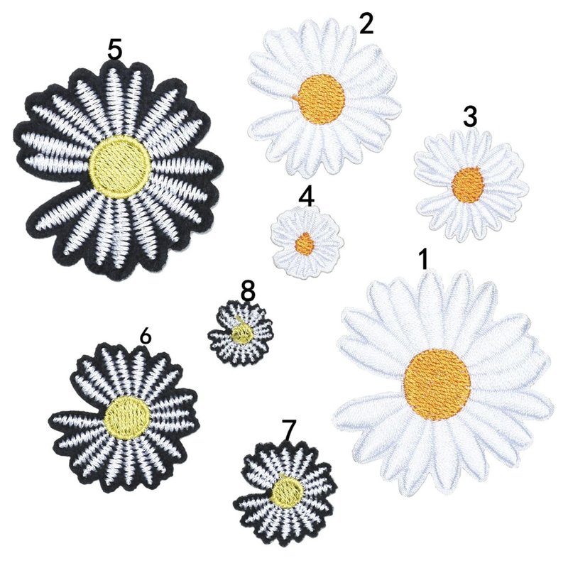 - Includes: 8 pcs of Colorful Cool Daisy Style Embroidered Iron-on Patches,especially suitable for kids,adults.Every appliques has a durable adhesive glue on the back for iron-on transfers or sewing onto clothing,jackets backpack and so on.