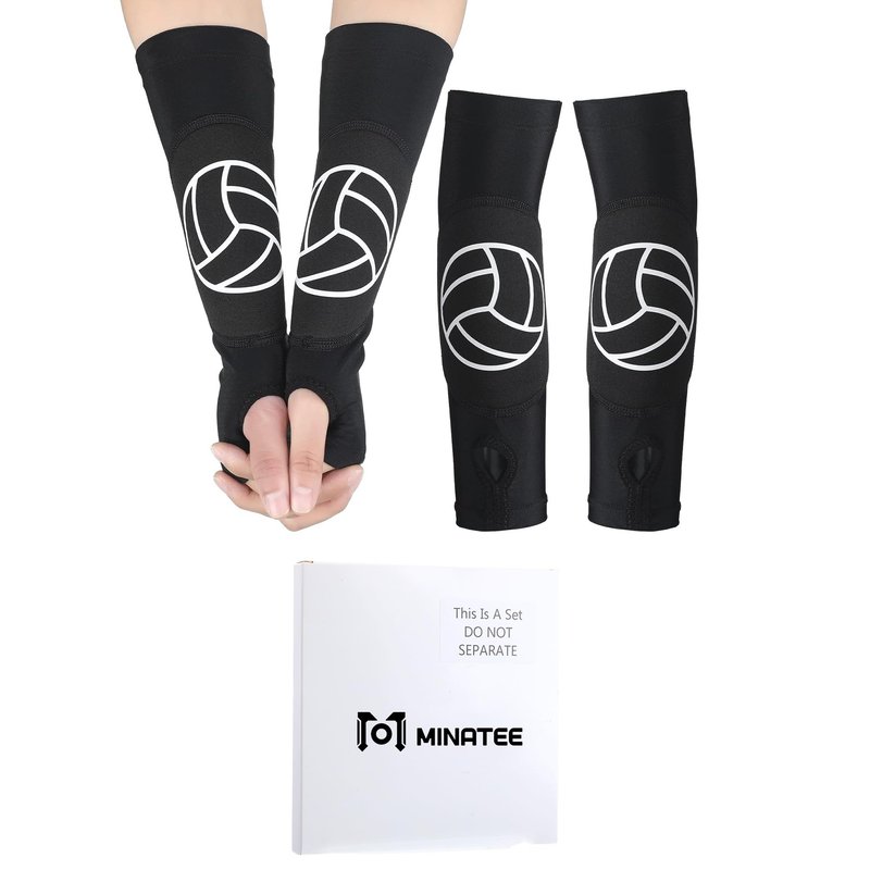Minatee Volleyball Arm Sleeves Passing Hitting Forearm Sleeves with Protection Pads and Thumb Hole Padded Volleyball Sleeves (1 Pair, 12 Inch)
