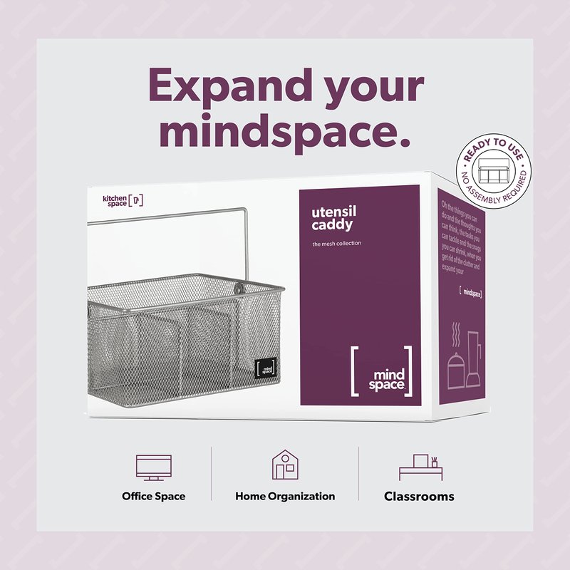Mindspace Utensil Holder, Kitchen Condiment Organizer and Flatware Utensil Caddy | The Mesh Collection, Silver