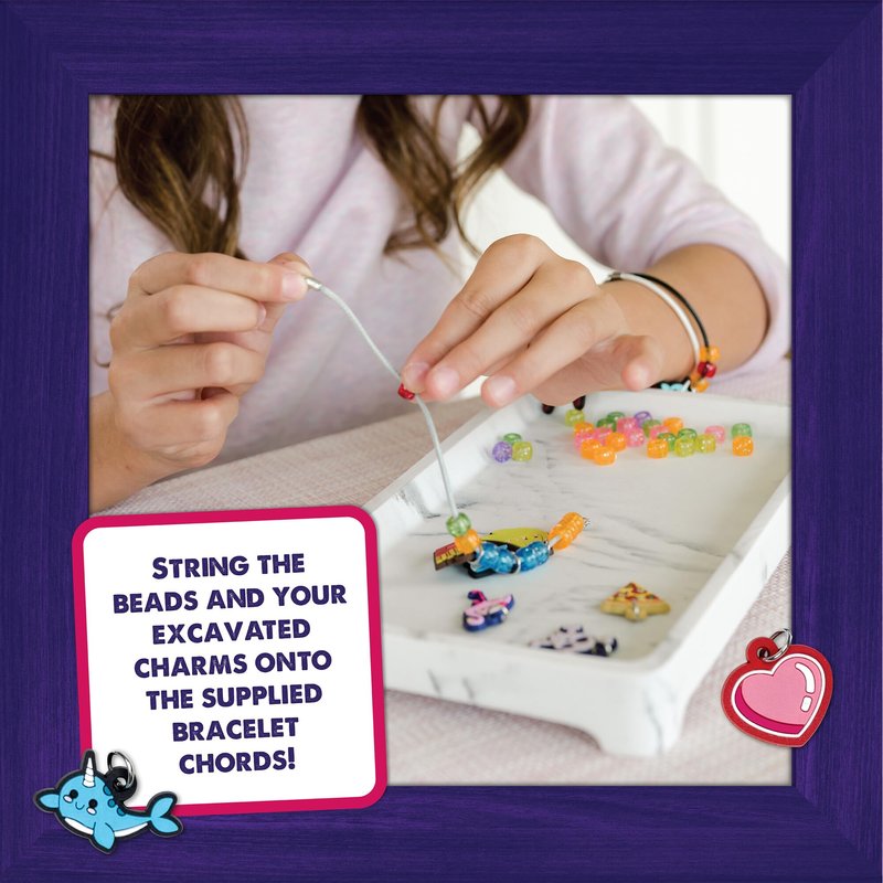 - TOYS THAT TEACH: Learn about the history of friendship bracelets, the benefits of friendship and more as you dig and discover cute charms. Experience the thrill of discovery while you chisel out 13 soft rubber charms. Then have fun crafting as you add the charms and additional included beads to create 3 friendship bracelets!