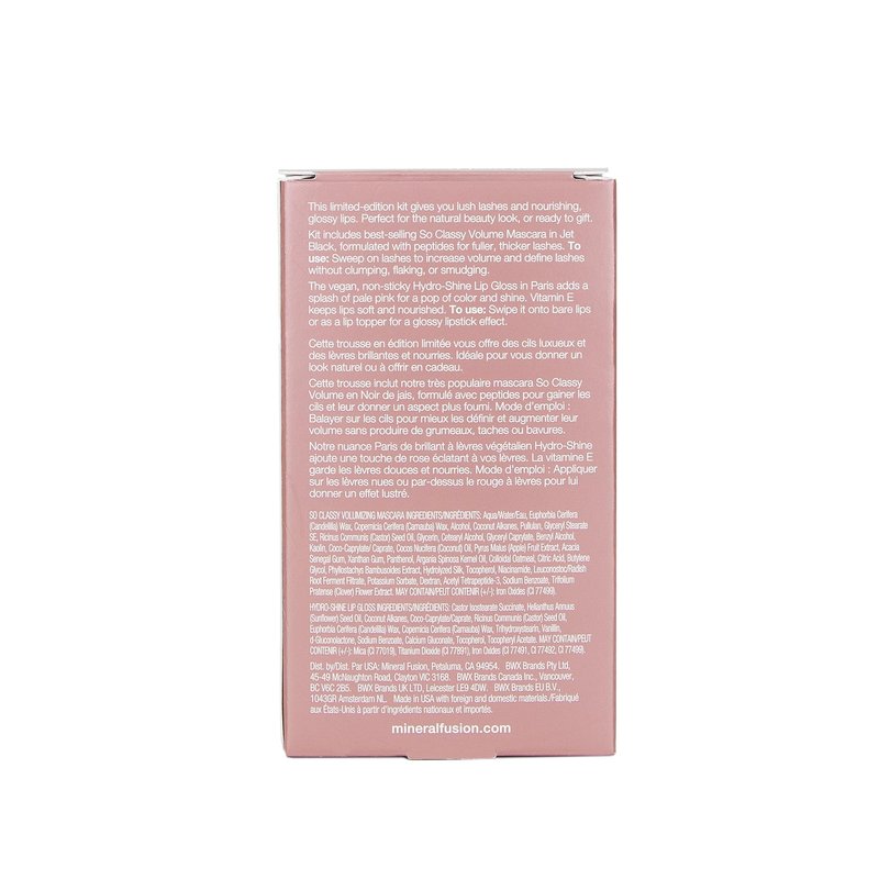 Mineral Fusion Lip Gloss + Mascara Makeup Kit, Natural Beauty Eye & Lip Duo, So Classy Voluminous Mascara in Jet Black & Shiny, Nourishing Pale Pink Lip Gloss, 2 Piece Make Up Gift Set for Women