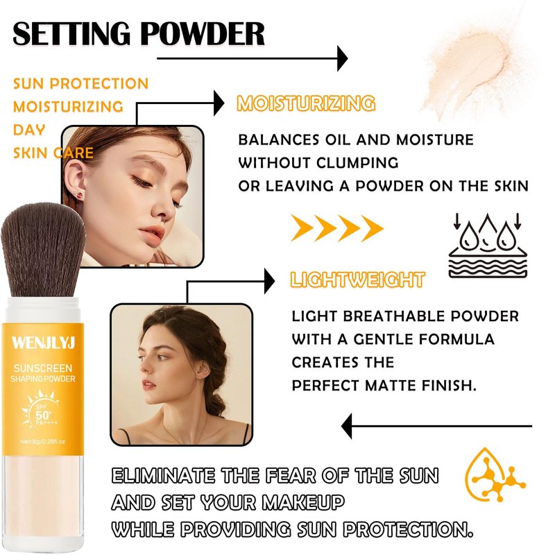 - š ćLight & Breathableć Mineral brush powder is light and non-greasy, light and breathable, giving you a comfortable sunscreen and make-up setting experience.