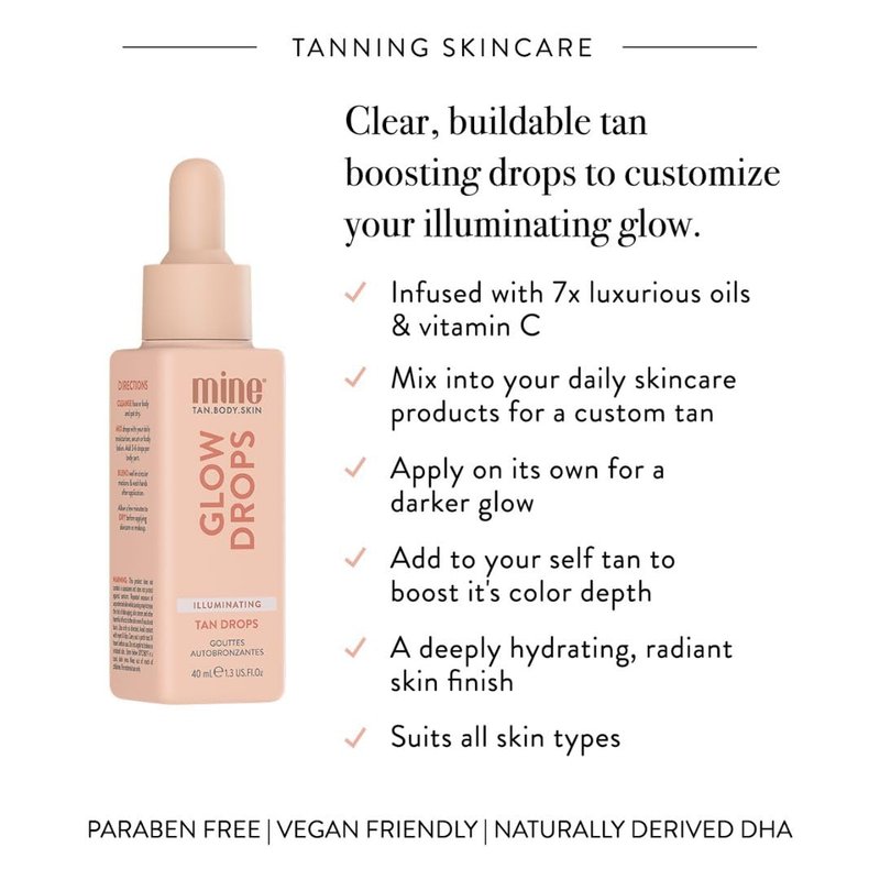 - TAN BOOSTING DROPS TO ENHANCE & ILLUMINATE THE SKIN. INFUSED WITH 7 LUXURIOUS OILS + VITAMIN C