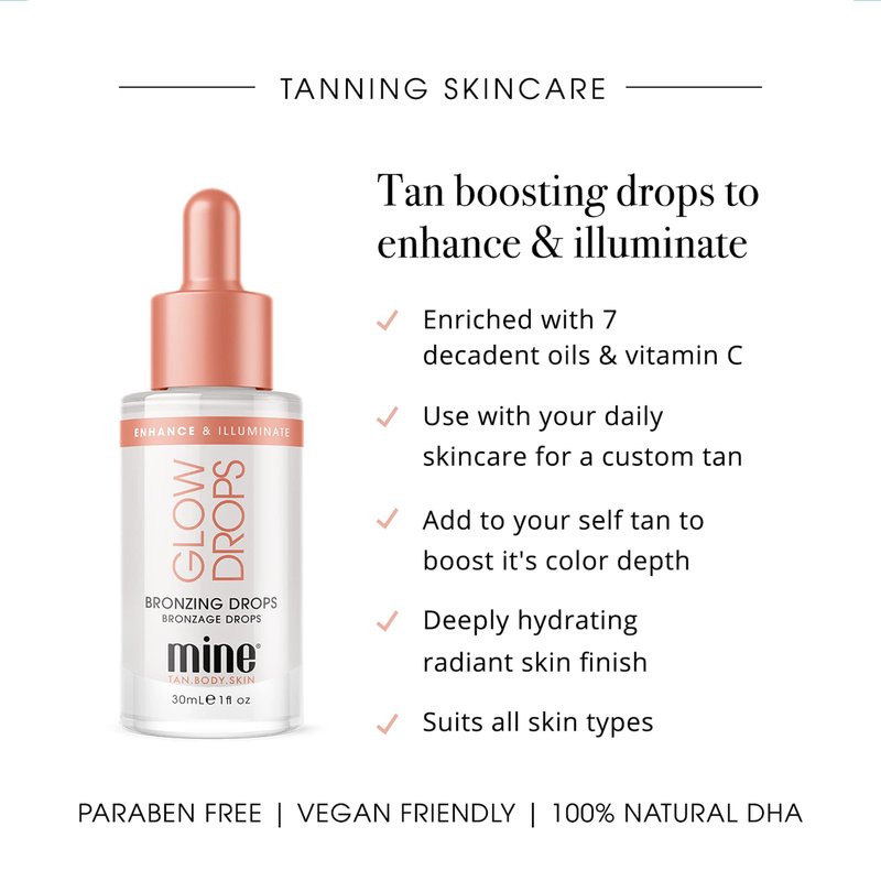 - Tan boosting drops to enhance & illuminate skin