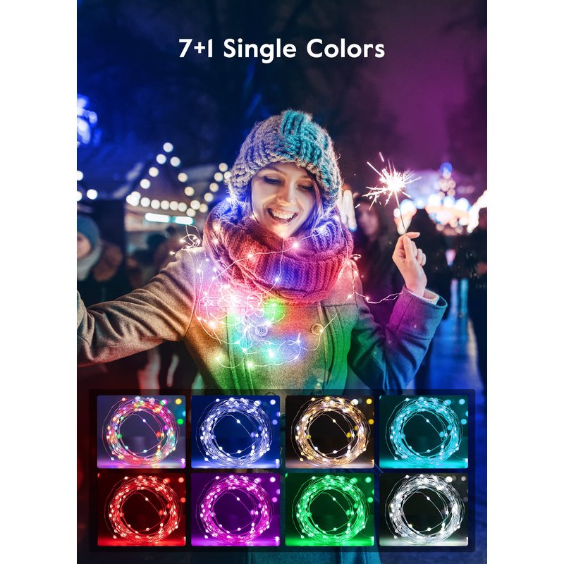 - 7 Single Colors & Multicolor: 33ft length 100 LED fairy string lights can change into 7 different colors and Multicolor, you can choose the color to go with your party theme, such as purple for Halloween, yellow or multicolor for Christmas or Easter, red for Valentine, green for St Patrick's Day, etc. Ideal decoration for holiday lights, bedroom, garden, living room, party