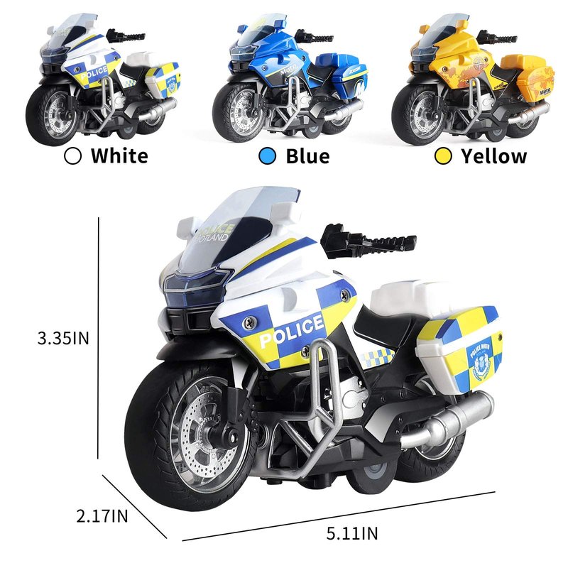- 【Safe Toys for Kids】This pull back motorcycle toys are made of high quality ABS plastic and Alloy, safe and 100% Non-Toxic.High quality rubber wheels,anti-skid,shock resistant,strong grip.It made with genuine rubber tires can effectively reduces the impact force.