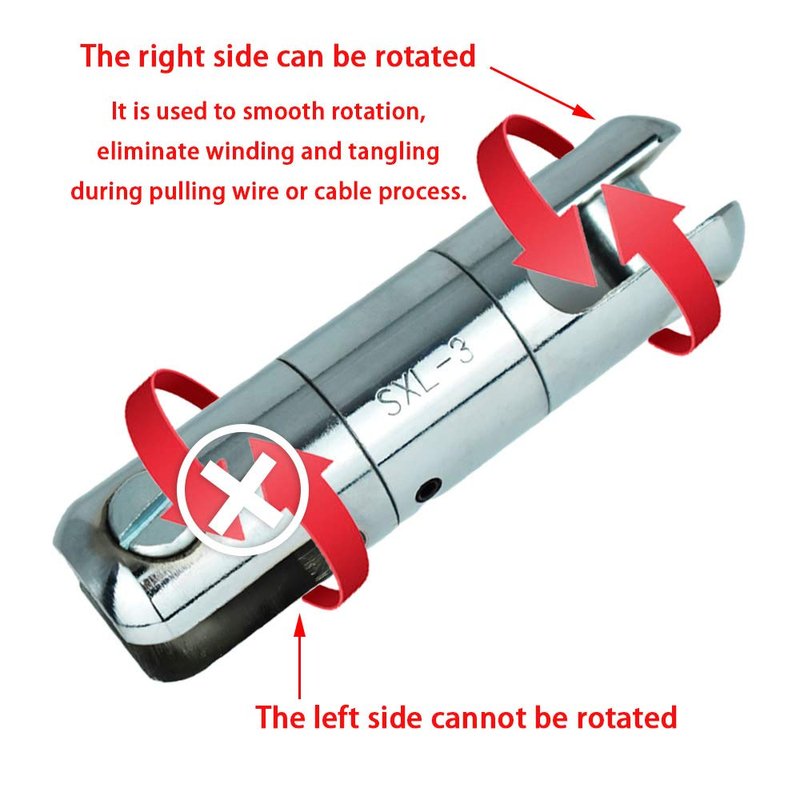 - 【Function】: The cable pulling swivel smoothes rotation and eliminates winding and tangling during the pulling process. The breakaway pin can break at a preset load to prevent damage to expensive cables, and it’s replaceable.