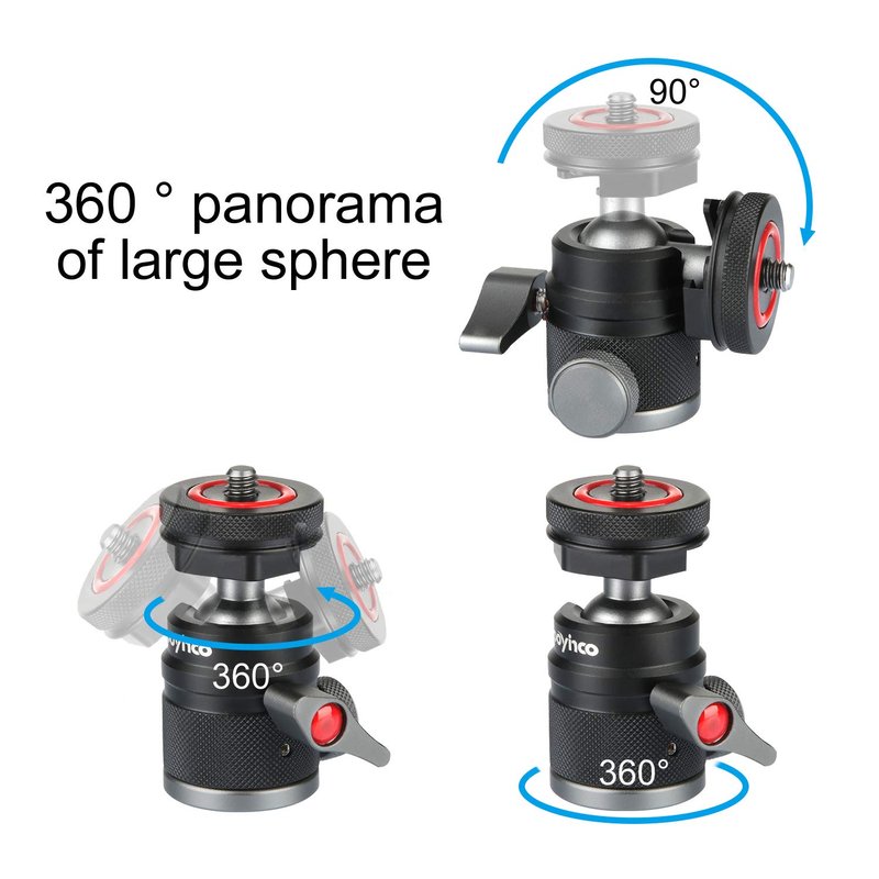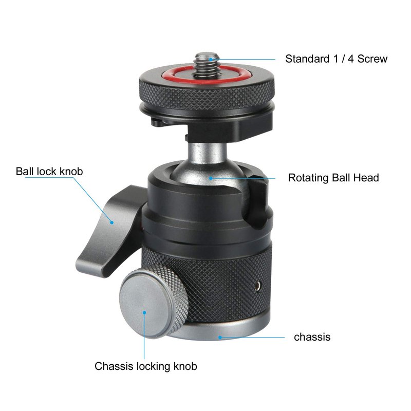 Mini Ball Head with 1/4" Hotshoe Mount Adapter 360 Degree Rotatable Aluminum Tripod Head for DSLR Cameras HTC Vive Tripods Monopods Camcorder Light Stand