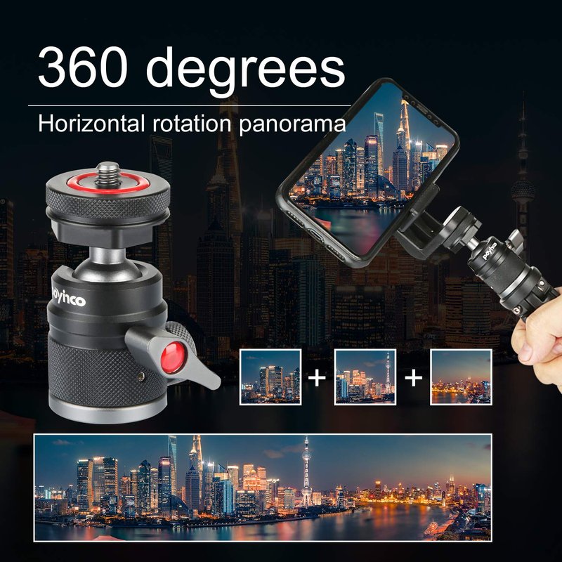 - 360 Degree Swivel Tripod Head - Ensure 360 degree horizontal rotating and from -90 degree to 90 degree tilting for panoramic photography when adjusting the angle