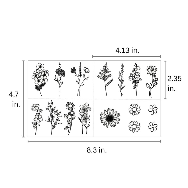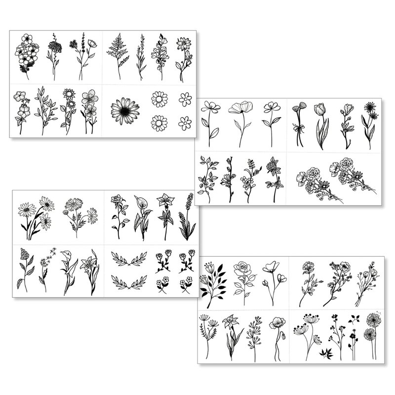 Introducing One Grace Mini Flower Temporary Tattoos ā a curated selection of beautiful hand-drawn black and white illustrations of flowers, roses, daisy, tulip, floral bouquets, and branches. This collection features realistic small and mini sized temporary tattoos that are long lasting, waterproof, and easy to apply.