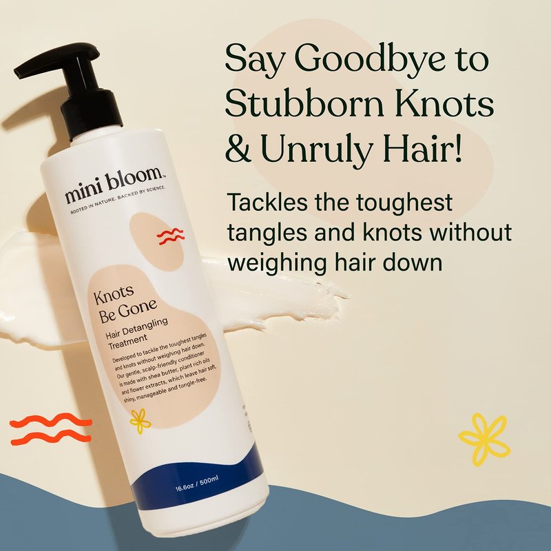 Mini Bloom Knots Be Gone Detangling Conditioner Treatment | Detangler Baby & Kid Safe | Made w/Shea Butter, Plant Rich Oils & Flower Extracts | Leaves Hair Soft, Shiny, Manageable Tangle-free 16.6oz