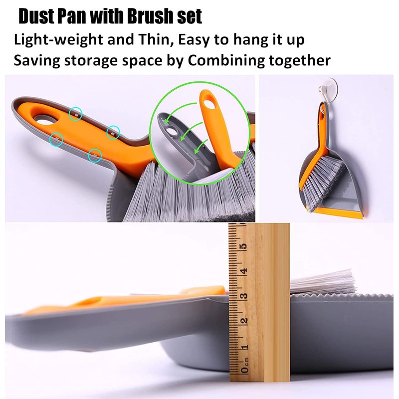 - 【CONVENIENT】There are four protruding bayonets to keep the handle and the dustpan fit, space-saving and convenient storage. The mini broom set has a simple and fresh design. It can be hung in design and can be stacked for storage. Both the sweep and the boom have hanging holes, which are convenient for hanging. Easily organization.