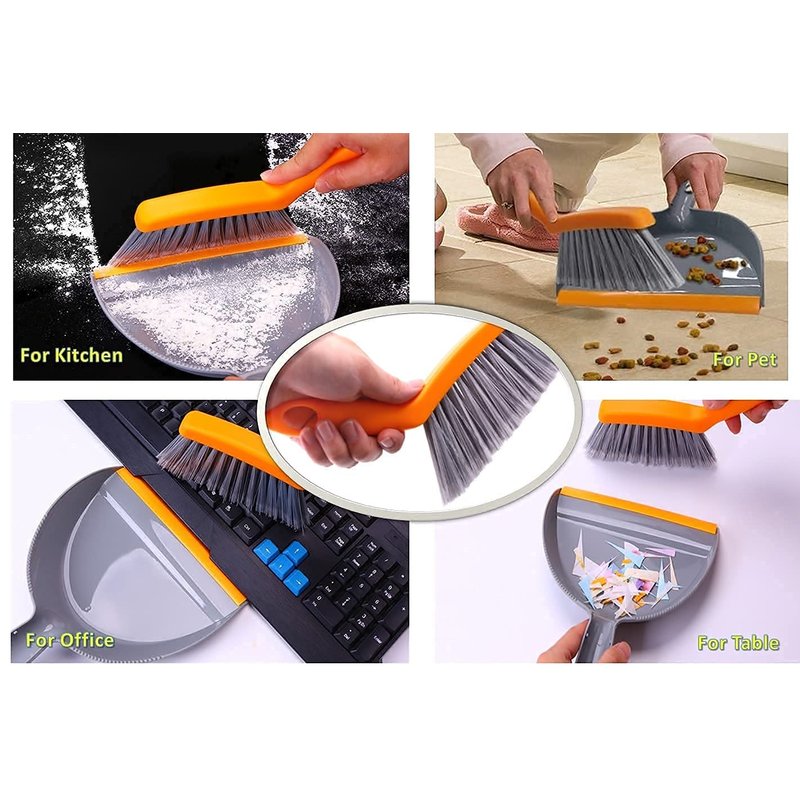 Mini Broom and Dustpan Set - Small Broom and Dustpan Set for Home, Camping Broom, Whisk Brooms Small(Gray Orange)…