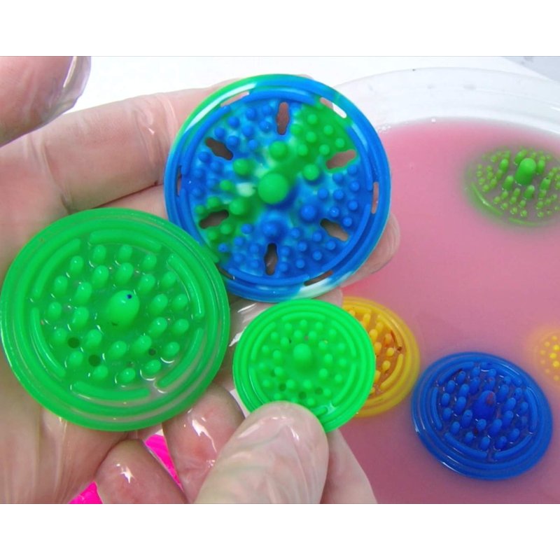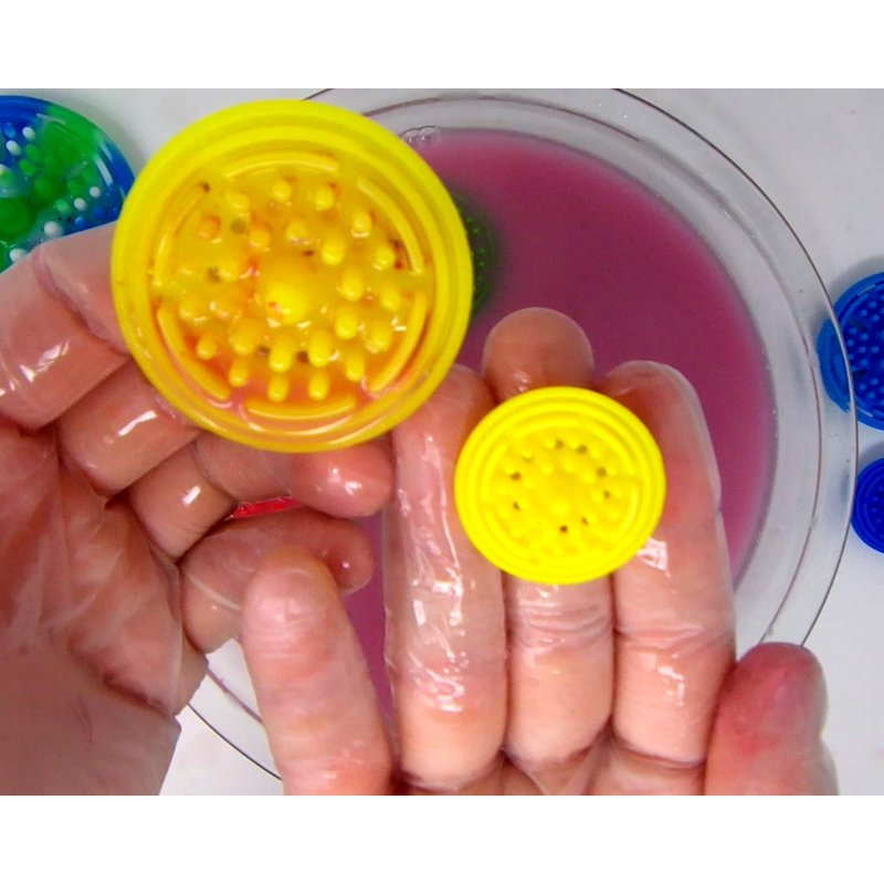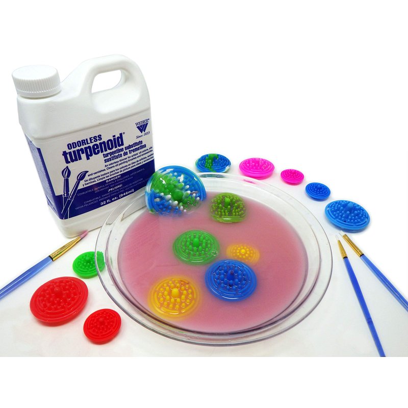 Soft Silicone Paint Brush Cleaners meant to withstand harsh chemicals like turpenoid and mineral solvents - by growing! Make it easier to clean away thick oils, turpentines, and solvents from your paint brushes with portable, reusable silicone mini paint brush cleaners. When you rely on traditional paint cleaning agitators that use a coil, grate, or screen, you’re continually ruining brush heads and limiting their natural lifespan. That’s why we created Paint Puck Mini Paint Brush Cleaners that fit inside jars and cups to help wash and clean away thick oils, solvents, minerals, and turpentine without damaging brushes. Starting off smaller than a quarter, the Mini Paint Puck slides into a rinse cup and starts growing as it absorbs the water or turpentine, creating a snug fit that holds in place properly. And because we made it with soft, gentle silicone nubs, they brush away thick oils without tearing or cutting bristles to ensure you continue to paint with crisp, clean lines. Product Details: Paint Puck Mini Paint Brush Cleaners (5-Pack) Small, Insertable Silicone Discs. Soft, Flexible Nubs (Safe on Bristles) Expands to Fit Jars and Cups. Easy to Install, Remove, and Clean. Reusable, Ecofriendly, Dishwasher Safe. Satisfaction Guaranteed. Get this 5-pack of reusable oil paint brush cleaners by clicking ‘Add to Cart’ above and make it easier to protect your bristles and improve your artistic results.