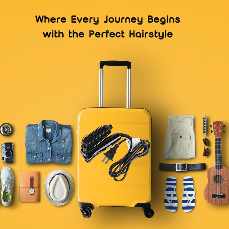 The foldable traveling hair iron is about half the size of a regular curling iron, Less than half of the weight also. Perfect for Travel around and 110-240V voltage no need power adapter . The bristles is not only works as a curling roller , but also acts as protection to your scalp and your hand. . If you have the traditional curling iron touching your face once, you know how painful it is. The 1" curling brush is perfect for short hair to get a salon hair styling look. Built with a ergonomic cool tip for easier handling and Ergonomic Handle for convenient and comfortable styling.