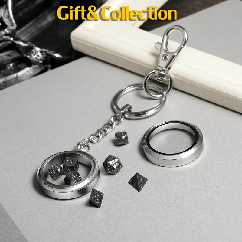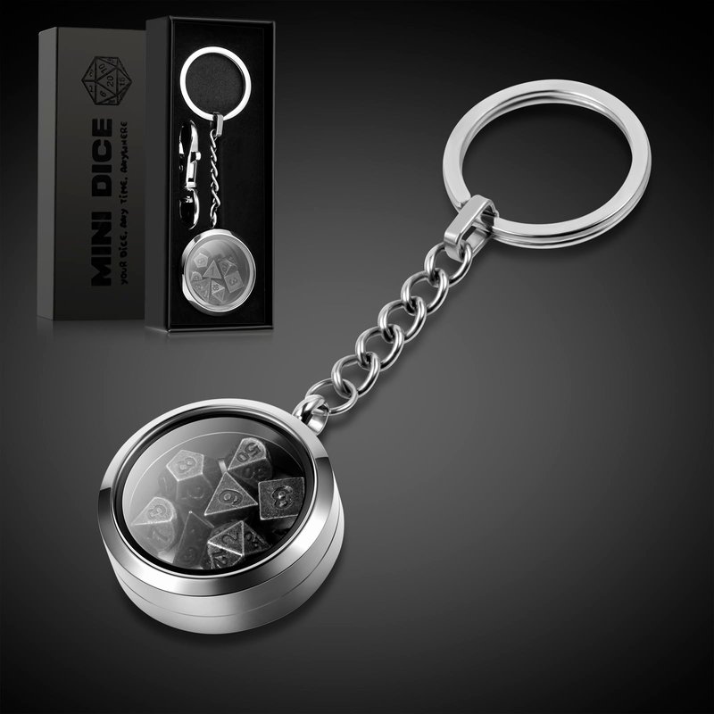 Mini DND Dice,DNDND 6mm Metal Dice Set with Kyechain Silver Stailess Steel Case and Gorgeous Gift Box for Dungeons and Dragon D&D Game (Iron with Silver Case)