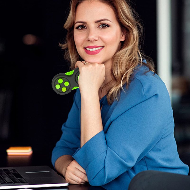 - 🎮 Fidget Controller Pad Toy 8 New Improved Functions:① A clickable rotatable joystick;② 4 clickable buttons (2 audible and 2 silent);③ Gear roller;④ A grip textured massage roller; ⑤ A clickable switch, ⑥ A spinnable dial; ⑦ A spring loaded slider;⑧ A grip textured section.