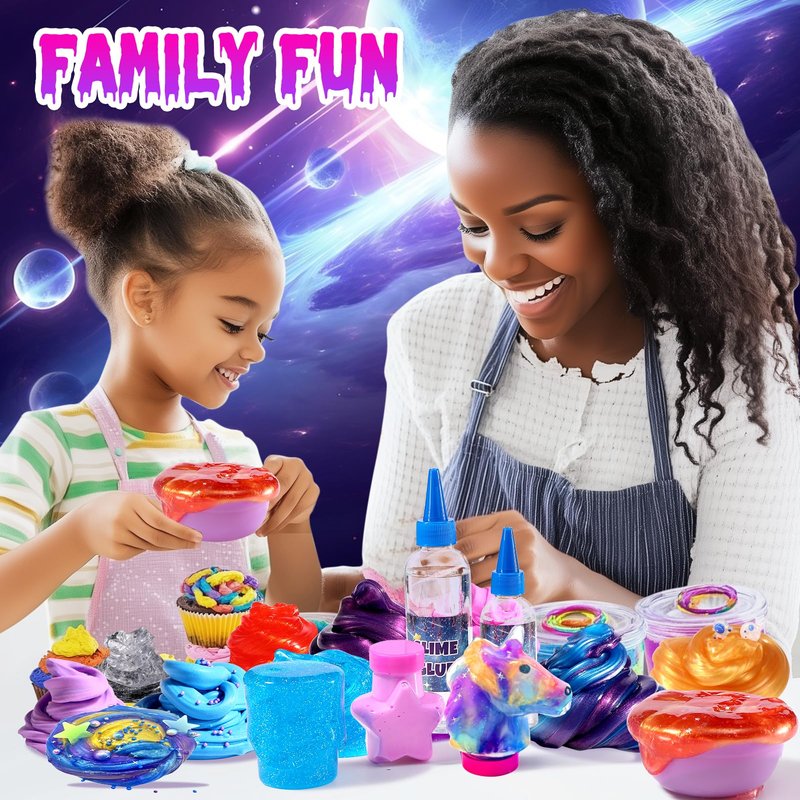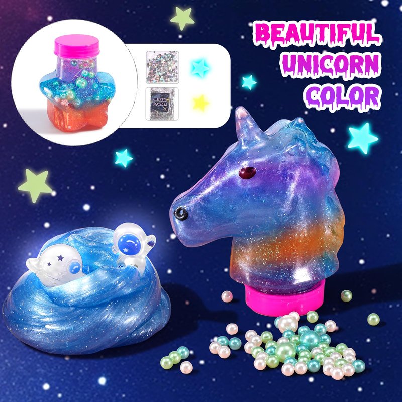 - Mini slime craft kit to create the best sparkly, colorfulGalaxy Glitter Slime with Unicorn Colors fluffy for kids DIY fun!