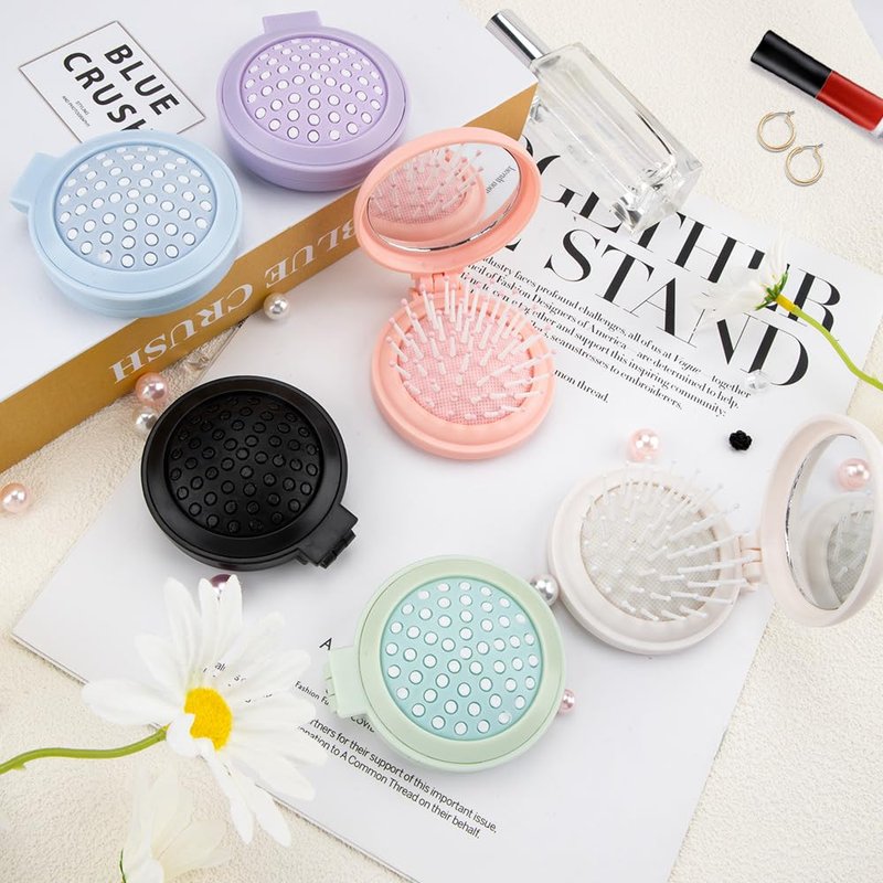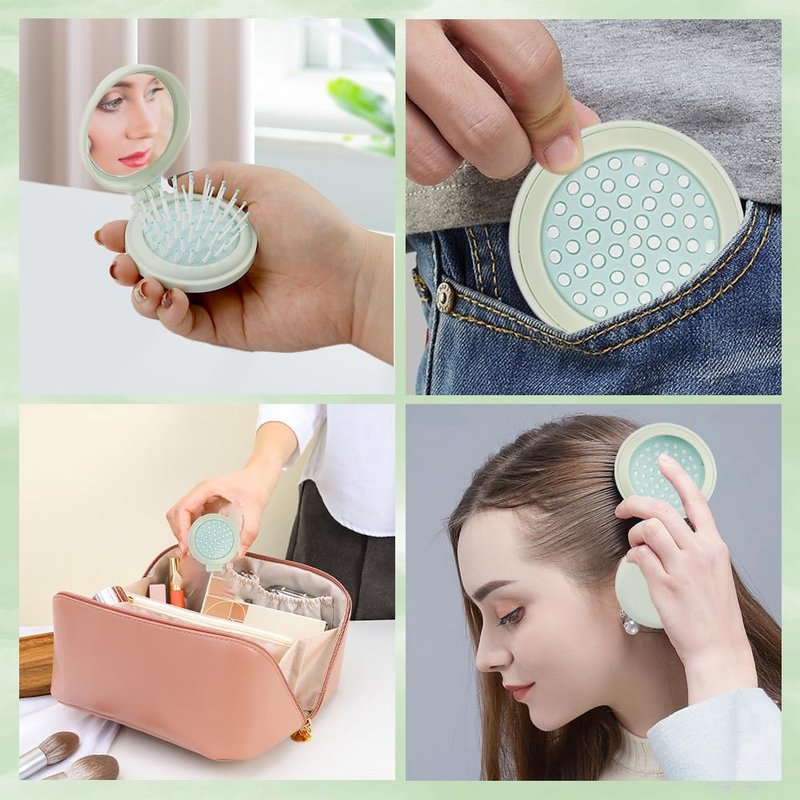 - ✨【Clever Design】 One half of the portable comb is a mirror and the other half is an travel brush, you can organize your hair and makeup anytime and anywhere. Due to its small size, this mini hair brush can fit into most girls' bags, not taking up space and convenient.