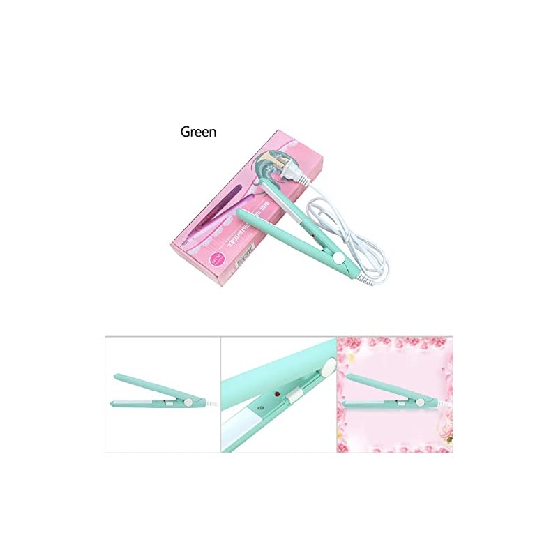 Mini Hair Straightener, Ceramic Tourmaline Plate Beauty Flat Iron Heating Curler, Smart Constant Temperature for All Hair Types Makes Hair Shiny and Silky(US-Green)