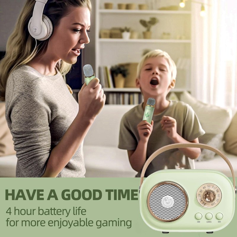 Mini Karaoke Machine for Kids with 2 Wireless Microphones Portable Kids Microphone, Karaoke Microphone for Kids Age 5, 6, 7, 8, 9, 10,11+Years (Green)