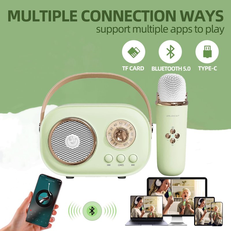 - Portable Fun: Portable bluetooth speaker withwireless microphone light weight, compact and portable, Type-C charging cable ensures quick recharges, offering up to 4hours of playtime on a single charge