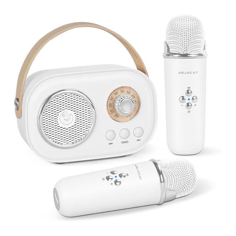 - Dual Microphone: Mini karaoke machine with 2 microphones, theinclusion six fun sound effects(Original, KTV Mode, Female, Male, Child, Magic), short press the MIc On/Off button andswitch between the original voice or accompaniment modealternately