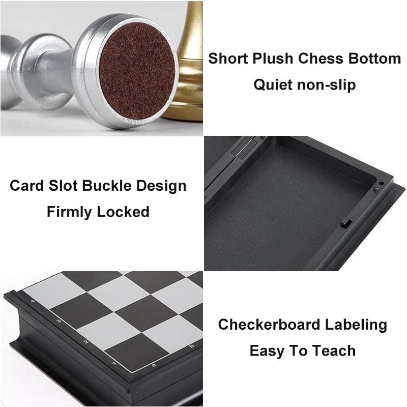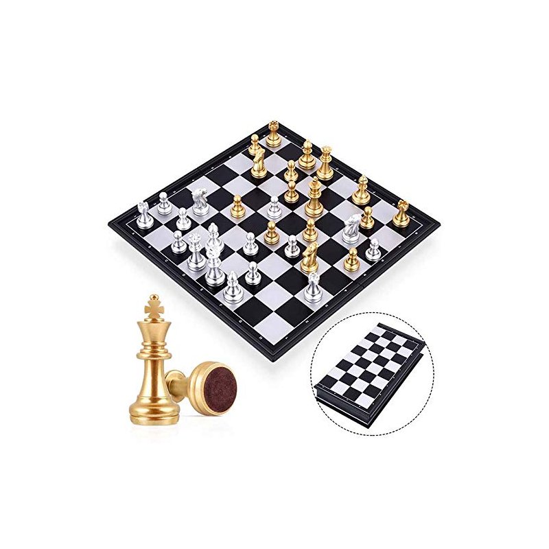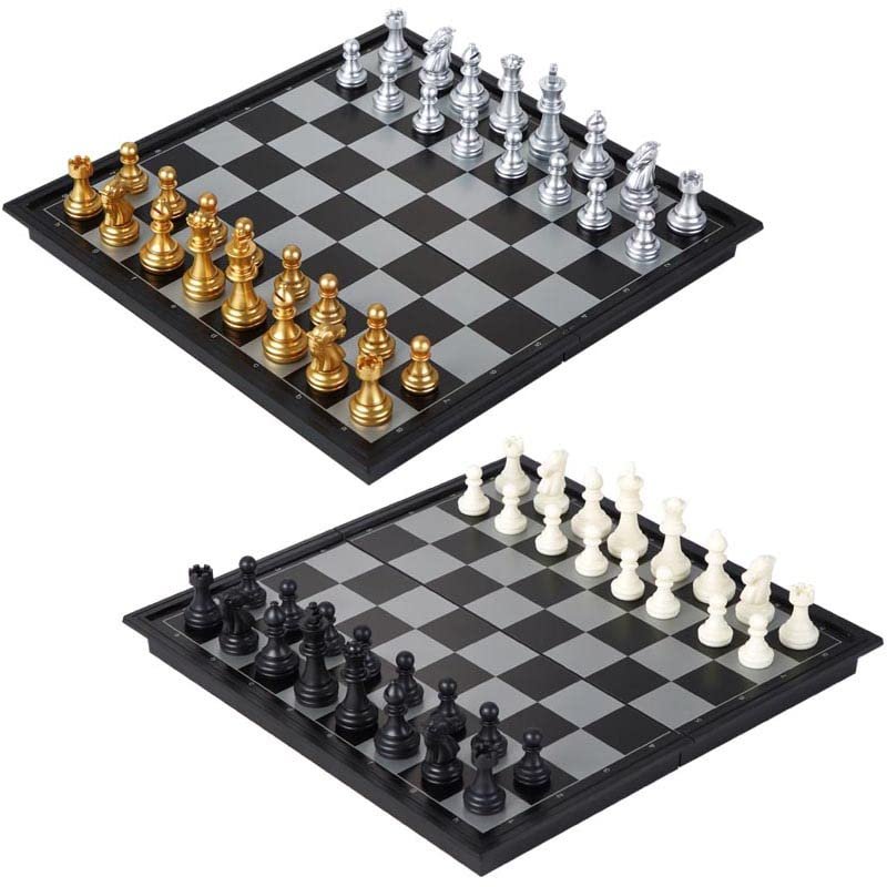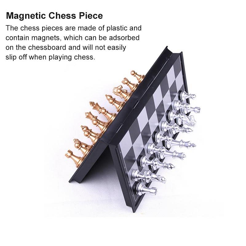 Mini Magnetic Chess Board Game with Gold and Silver Color Pieces, Foldable Durable, Easy to Carry (7.8 inch)