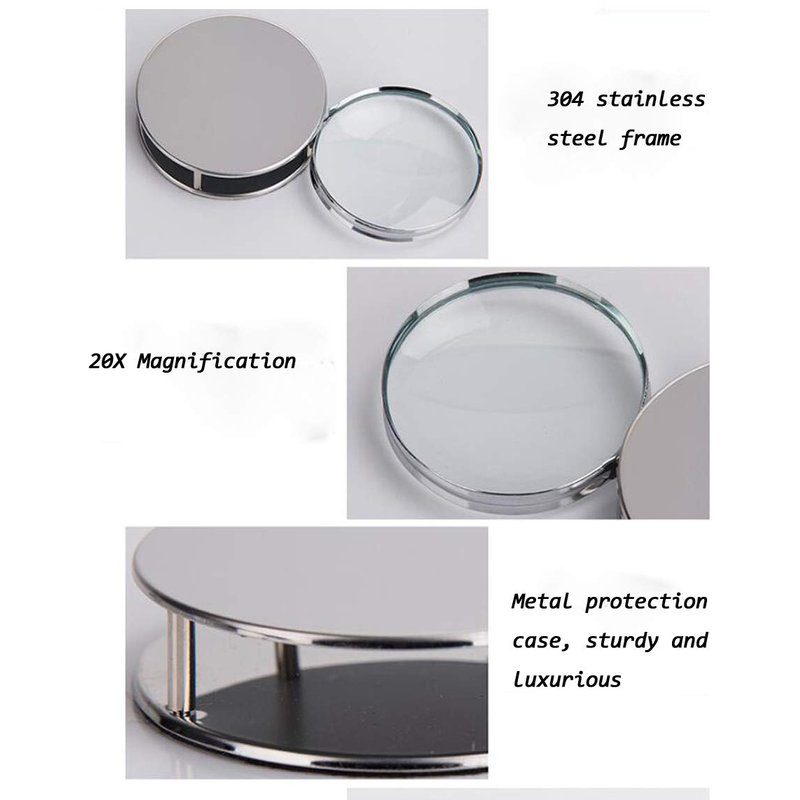 Mini Magnifying Glass 20X Folding Pocket Magnifier with Metal Protective Case Foldable Reading Magnifying Glass Portable Pocket Magnifying Glass for Reading, Inspection, Jewelry, Coins, Hobby, Travel