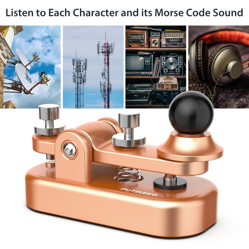 Mini Morse Radio Key CW HAM Send Telegram Double Paddle Morse Code Key with Aluminum Alloy Body Base Gold(S)