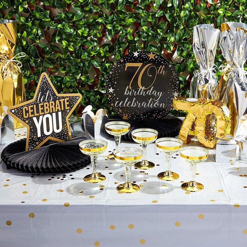 - MATERIAL: The mini gold foil number 70 pinata is made of corrugated paper inside and tissue paper on the outside