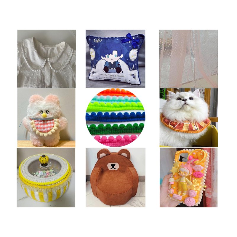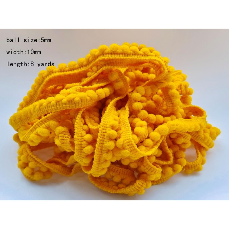 - Material: Polyester.The whole width of the trim:10mm.The ball size:5mm.About 120 balls per yard.