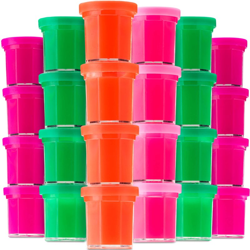 - BULK MEGA PACK OF 48 This ultimate pack of bulk slime Noise Putty for Kids by Bedwina includes a premade slime assortment in Neon Colors including: 16 pink small slime, 16 orange slime in bulk,16 green mini slimes play putty containers for a total of 48 and hours of fun for everyone.