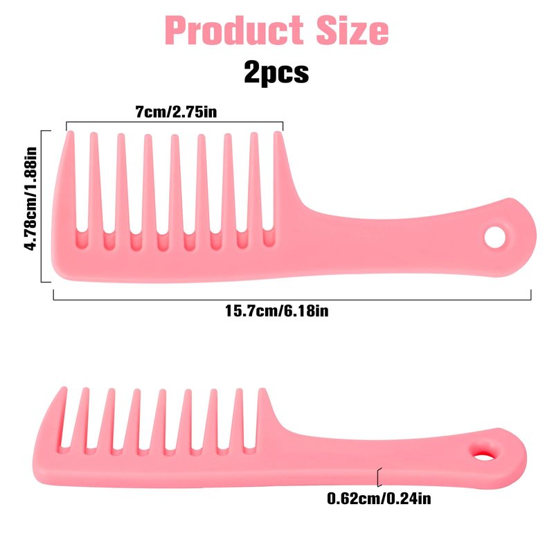 2pcs pink wide tooth comb