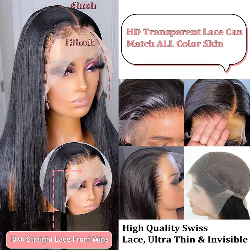 - 【Straight 13x6 HD Lace Front Wig Human Hair 】:100% Unprocessed Brazilian Virgin Human Hair From Young Girl Donor, Smooth and Bouncy, No Bad Smell ,Clean and Healthy. Soft and Comfortable Against Your Skin, Natural As Your Own Hair.