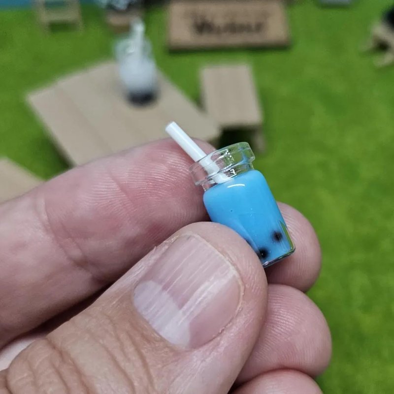 Miniature Bubble Tea Cups, Tiny Resin Bubble Tea Cup, Milk Tea Cup, Boba Tea Cup, Coffee Cup, 1/12, for Dollhouse, Miniature Kitchen Accessories, Dollhouse Miniature Crafts (10PCS) (Blue)