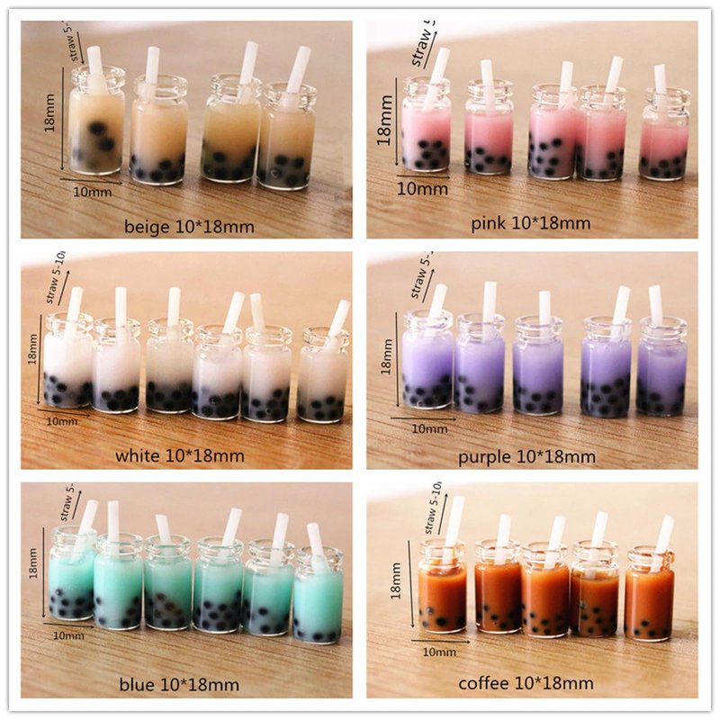 Miniature Bubble Tea Cups, Tiny Resin Bubble Tea Cup, Milk Tea Cup, Boba Tea Cup, Coffee Cup, 1/12, for Dollhouse, Miniature Kitchen Accessories, Dollhouse Miniature Crafts (10PCS) (Pink)