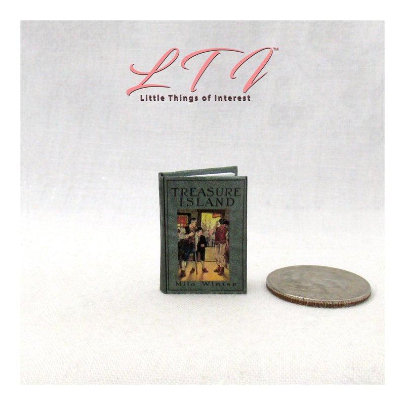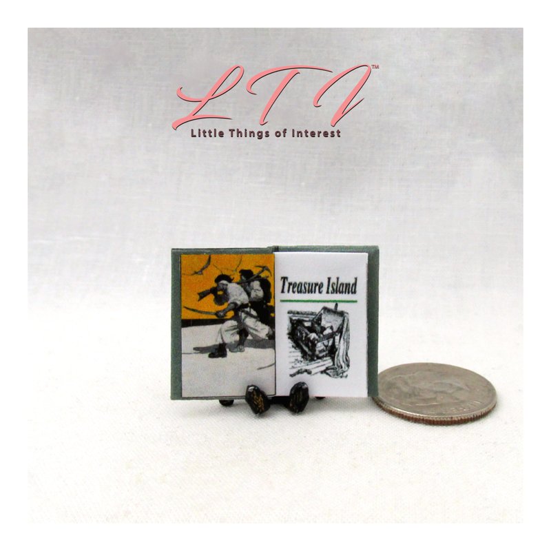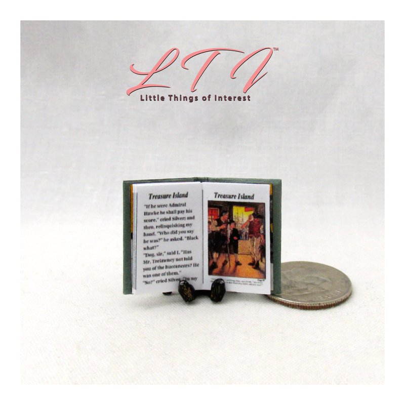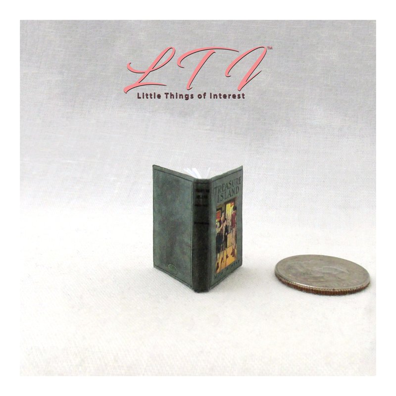 1:12 Scale Treasure Island has 14 pages with 7 illustrations and it measures approximately 13/16 of an inch high by 1/2 of an inch wide. The title is printed on the spine so it looks GREAT open or closed.